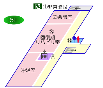 | ①非常階段 | ⑥エレベーター | ⑪面会室 | ⑯305 | |
